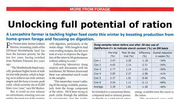 Optipartum-C+ Cows peak 8 litres higher on Derbyshire farm Cows peak 8 litres higher and overall yield and milk quality improved on Derbyshire dairy farm Read more