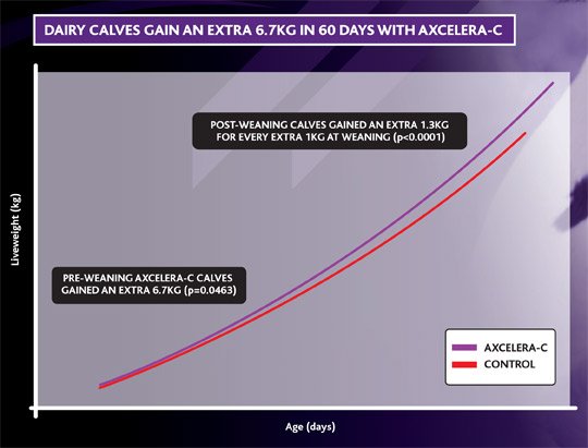Axcelera-C A new way of accelerating lifetime performance in dairy cows By positively manipulating the way a calf is fed and managed in early life, it is possible to switch on bodily functions that have the potential to accelerate life-long changes to improve efficienc Read more